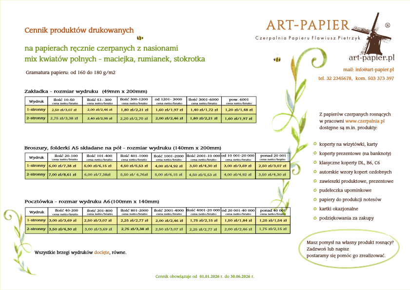 Cenniki w tabelach